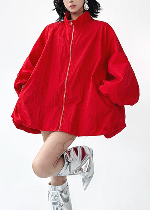 Khaki Pockets Oversized Cotton Coat Zip Up Batwing Sleeve