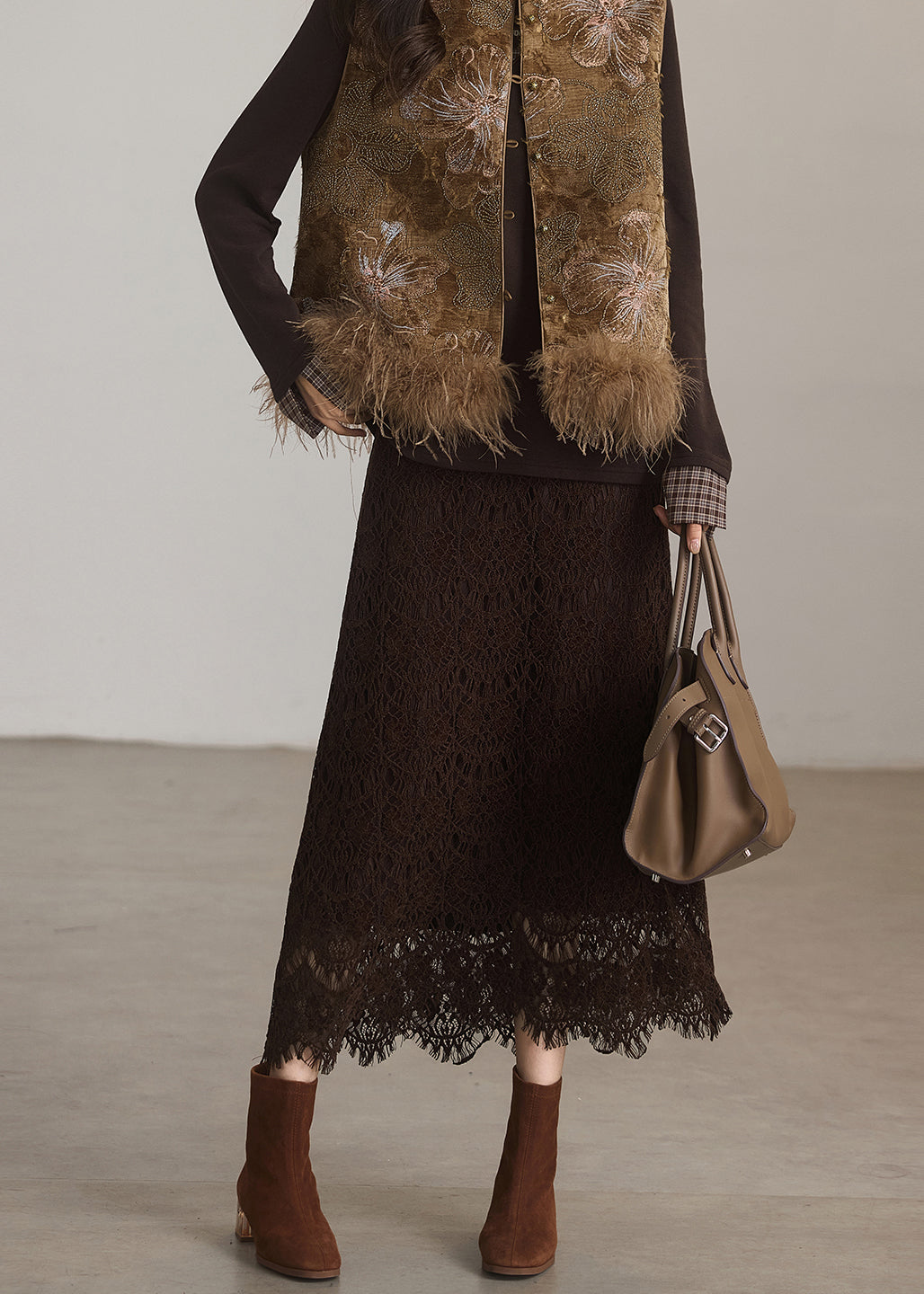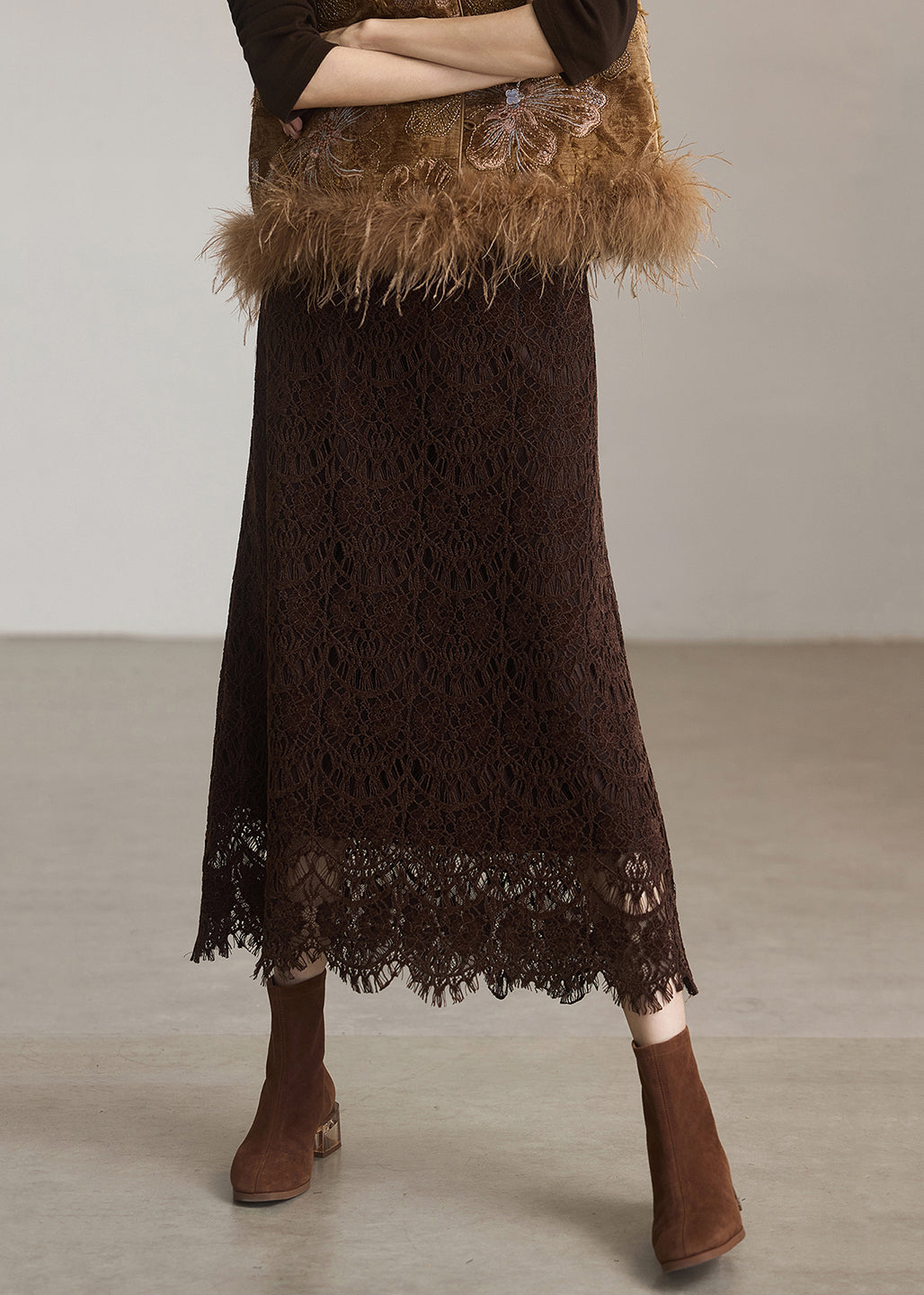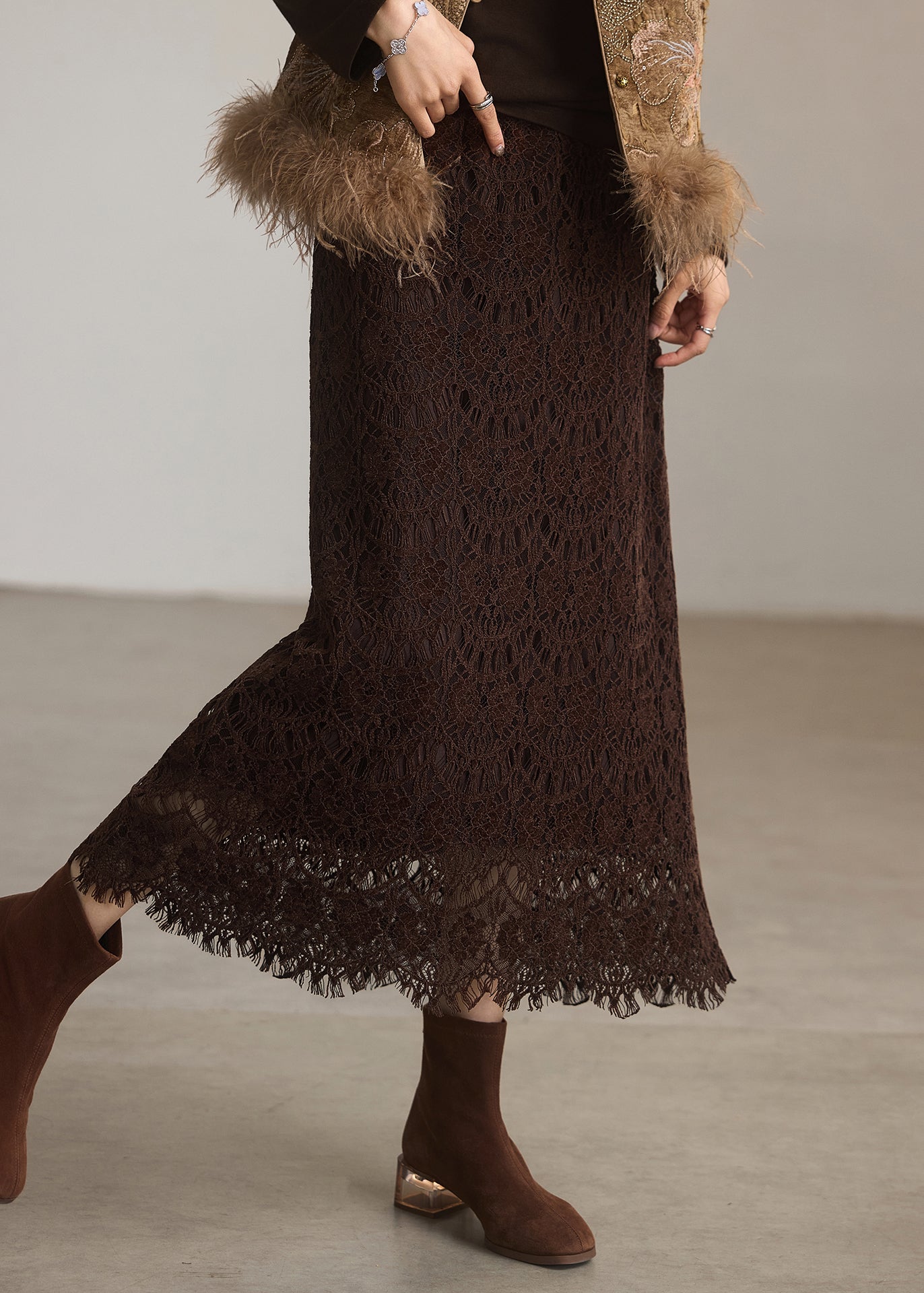Original Coffee Hollow Out Patchwork Lace Skirts Fall