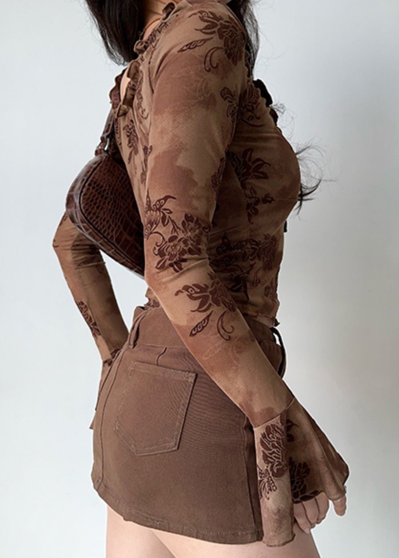 Italian Coffee Elastic Waist Slim Fit Lace Skirt Spring