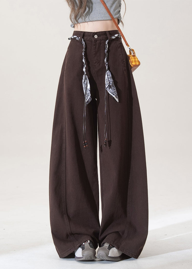 French Chocolate Pockets High Waist Denim Straight Pants Fall