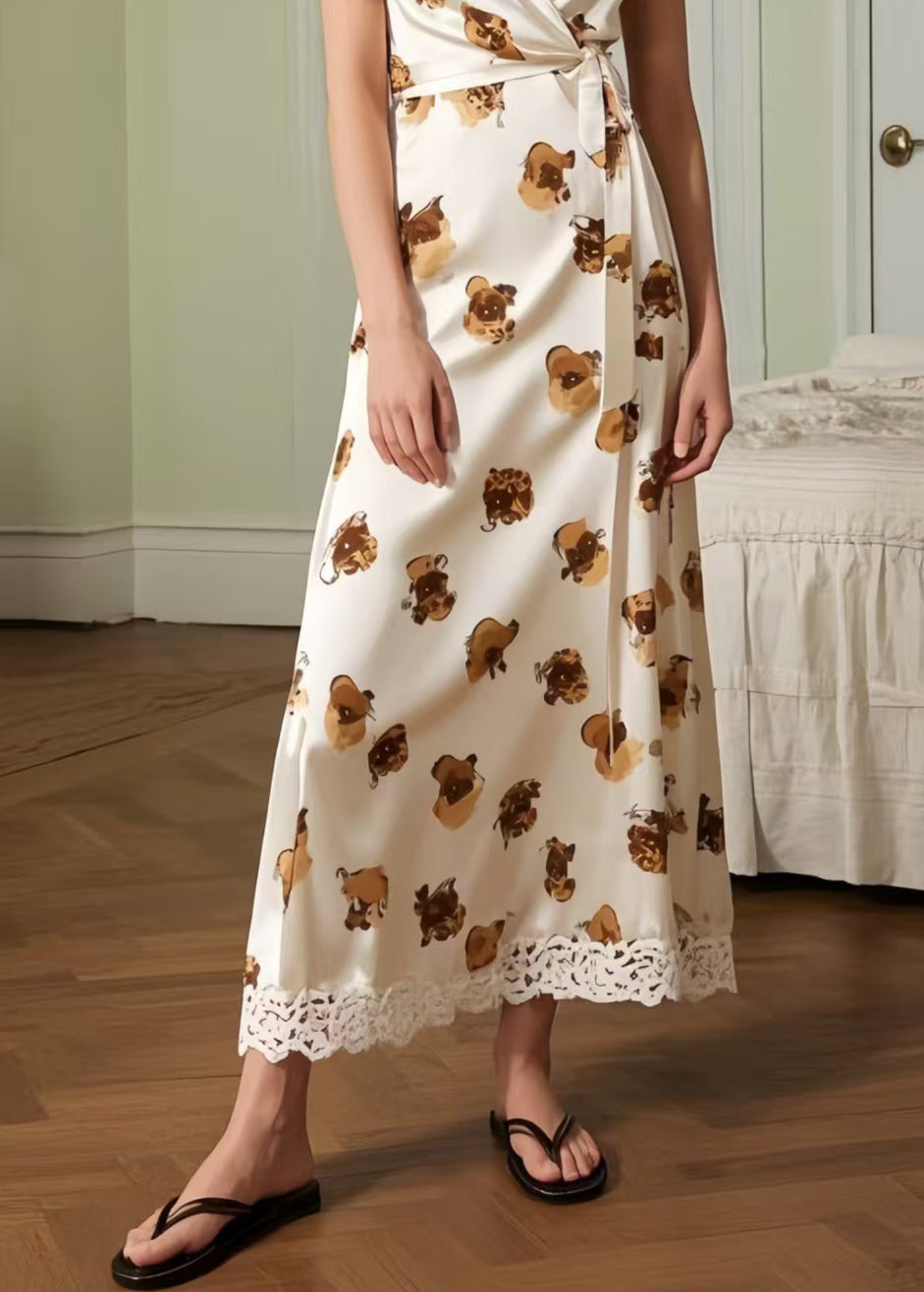 Cute Print Patchwork Lace Silk Cami Dresses Summer