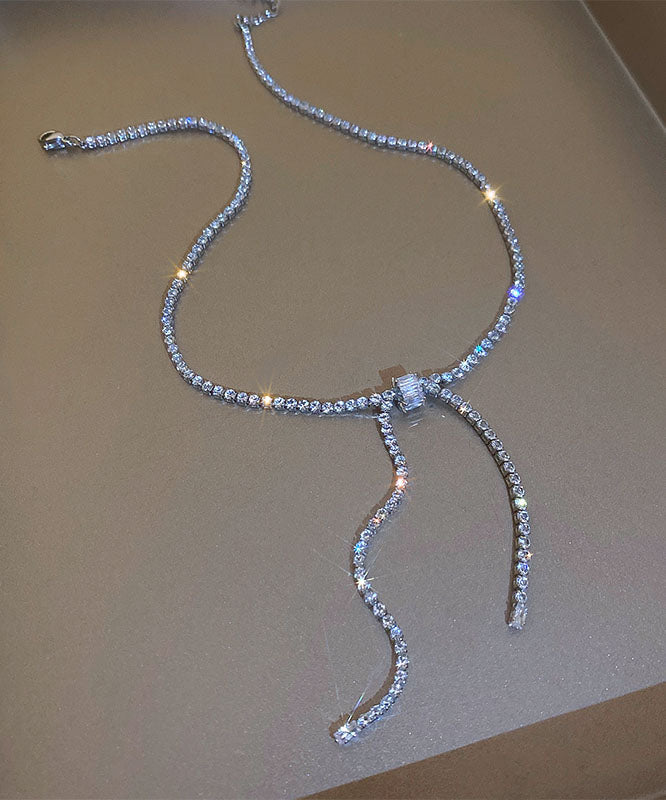 Fashion Silk Sterling Silver Zircon Bow Princess Necklace