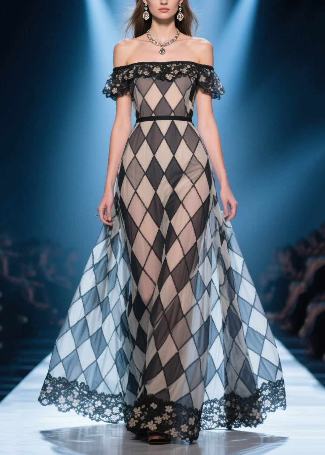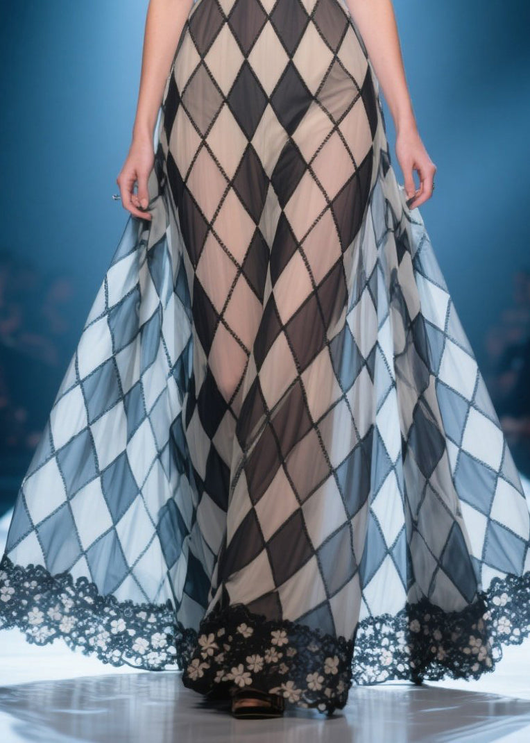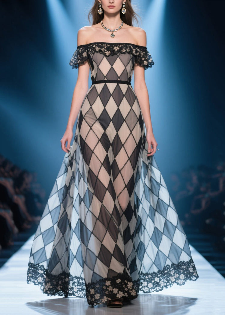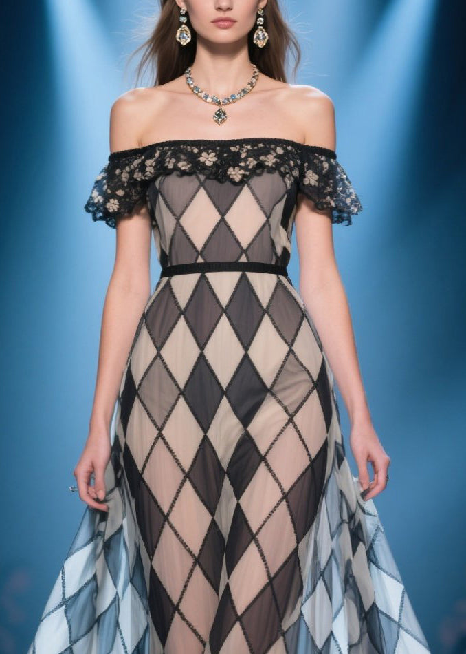 Style Brown Plaid Cold Shoulder Silk Strapless Dress Summer