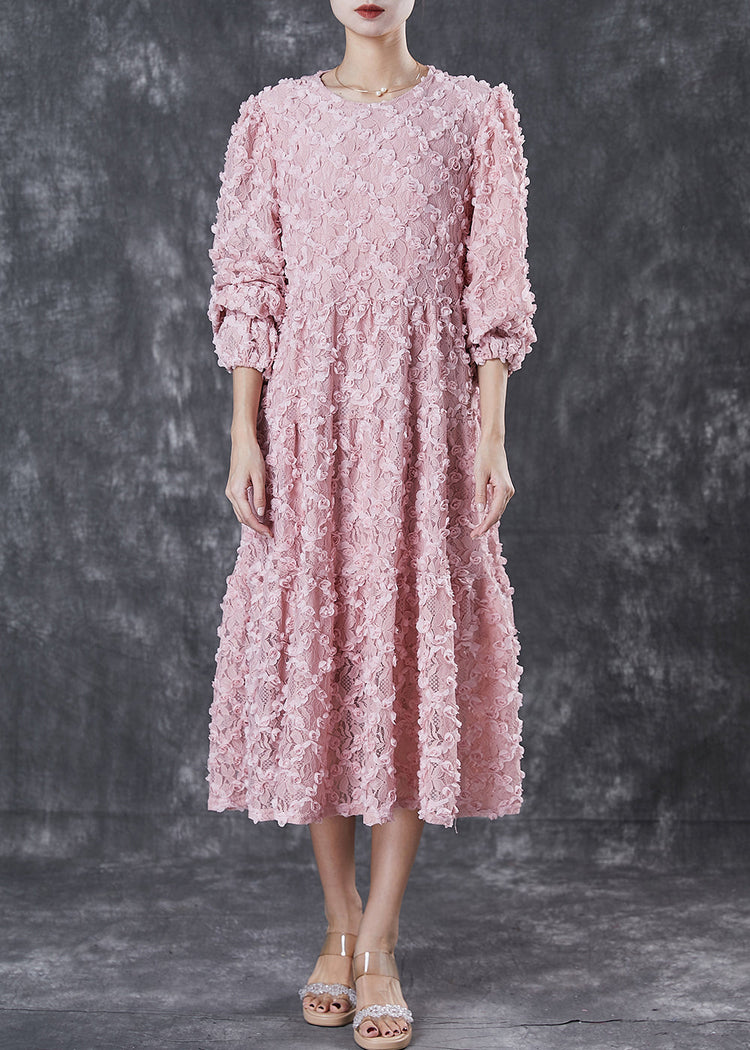 Women Pink Stereoscopic Floral Silk Vacation Dresses Spring