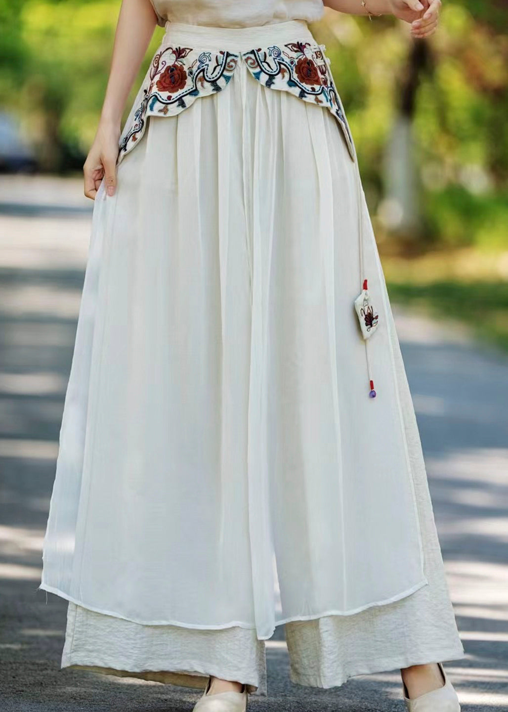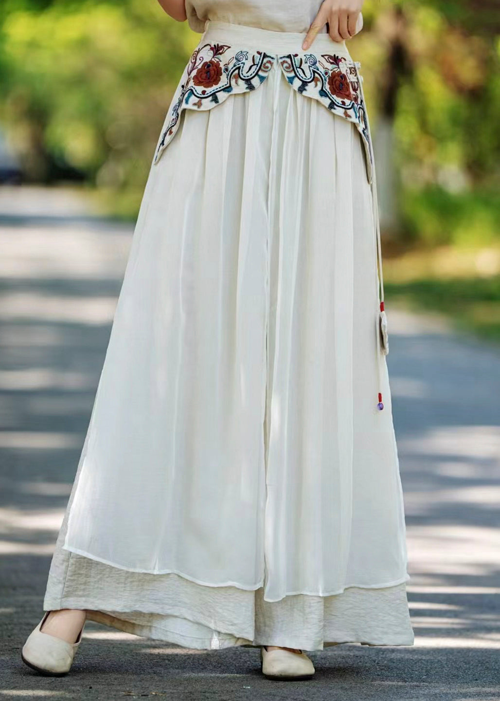 Art Apricot Embroidered Pockets Jacquard Silk Wide Leg Pants Fall