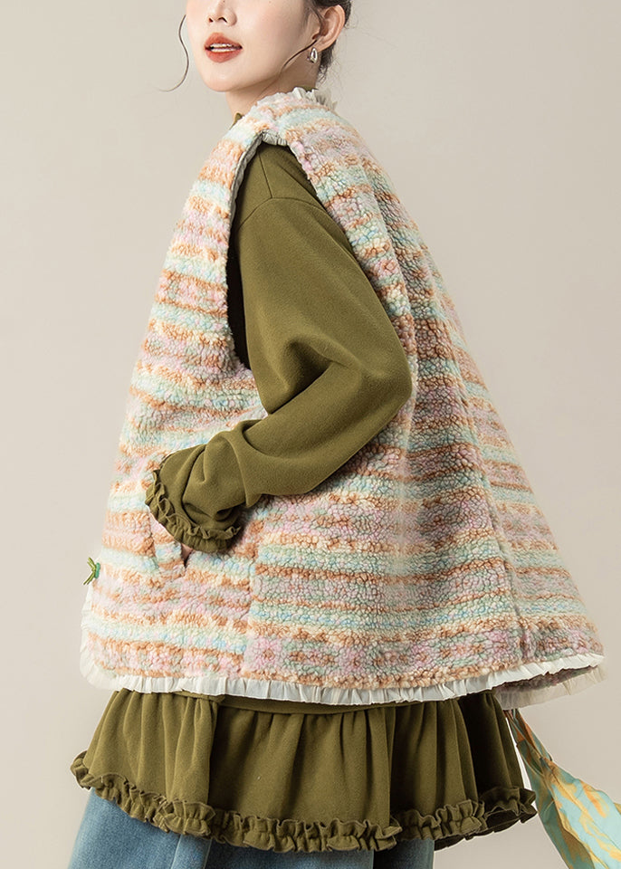 Coffee Patchwork Button Faux Fur Waistcoat Sleeveless