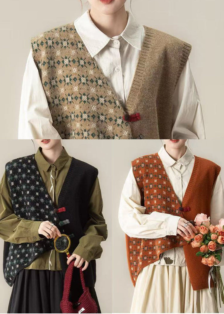 Khaki Loose Knit Short Vests Asymmetrical Design Winter