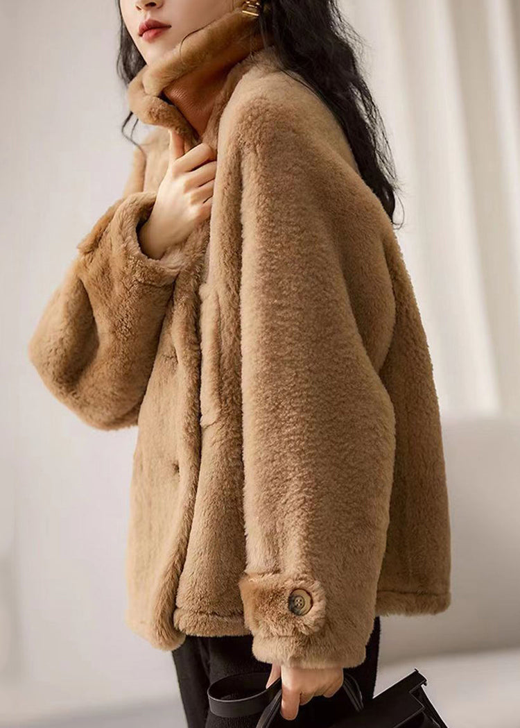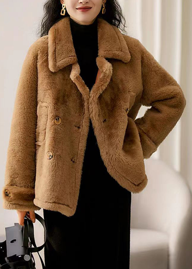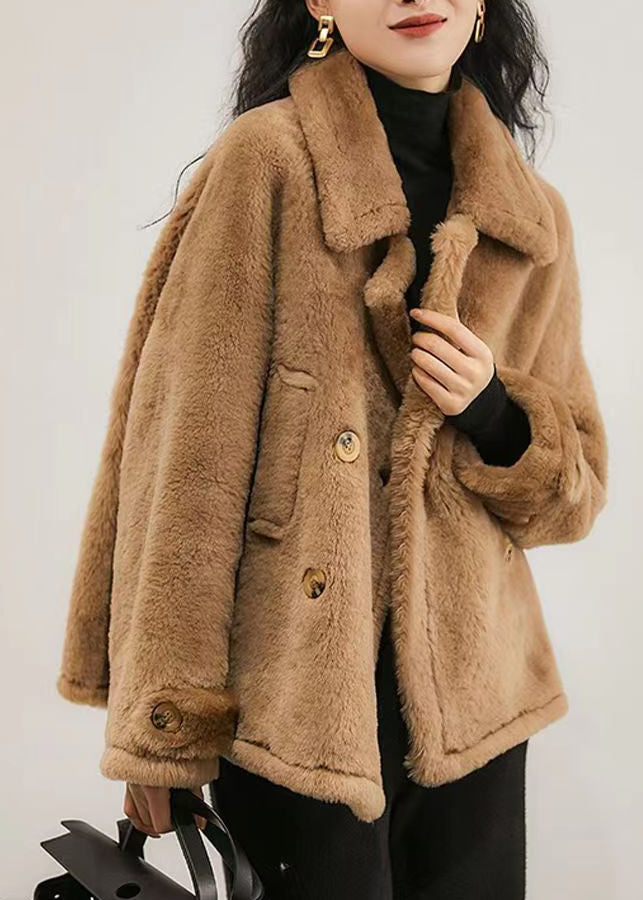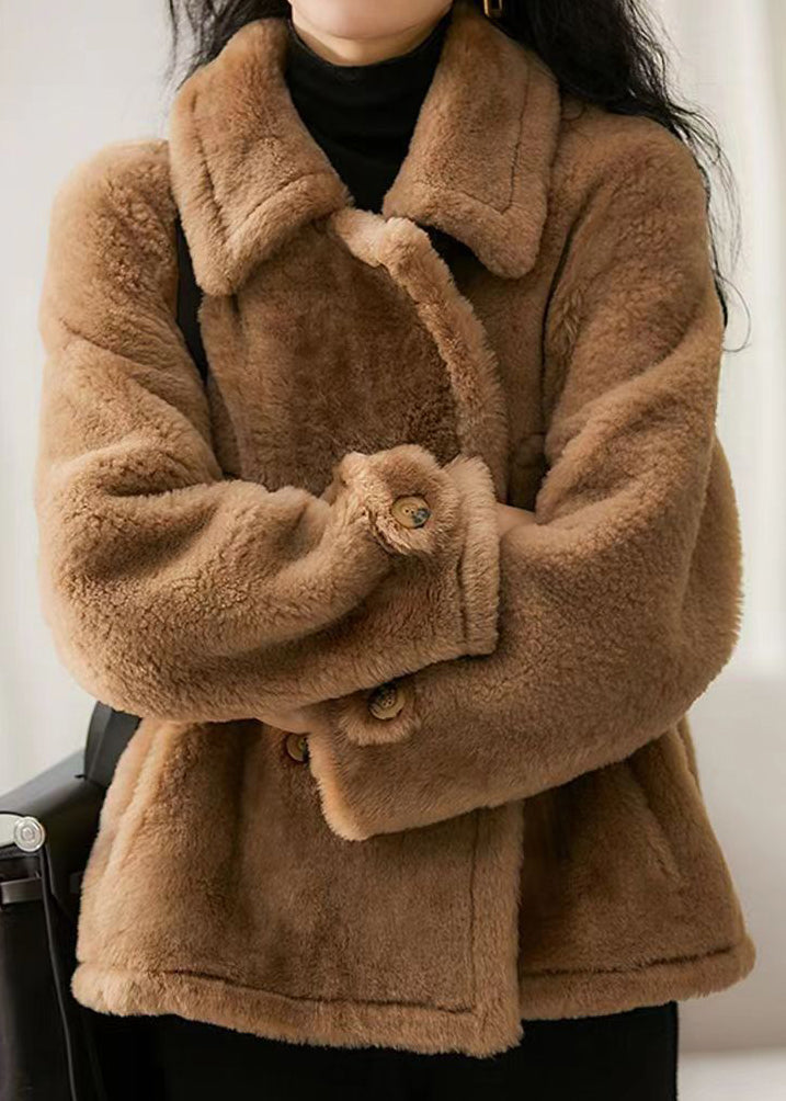 Brown Patchwork Wool Coat Outwear Peter Pan Collar Button Winter