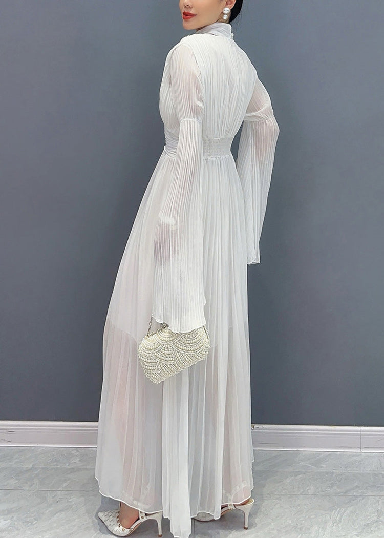 Elegant White V Neck Solid Chiffon Long Dresses Fall