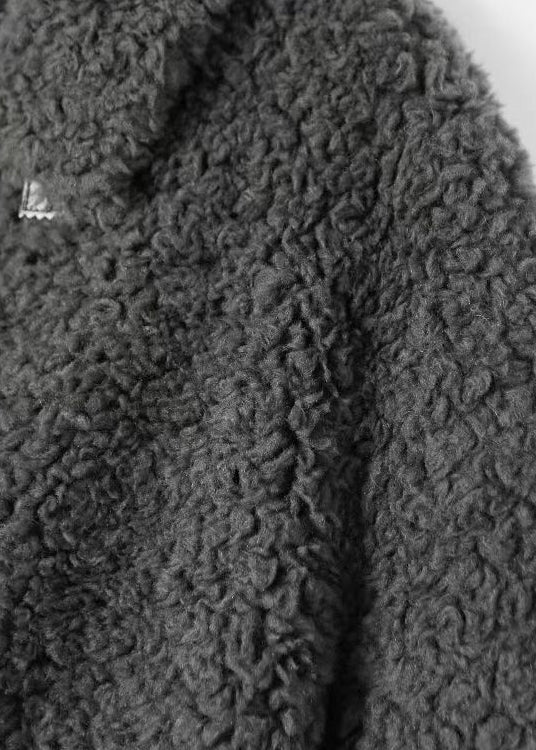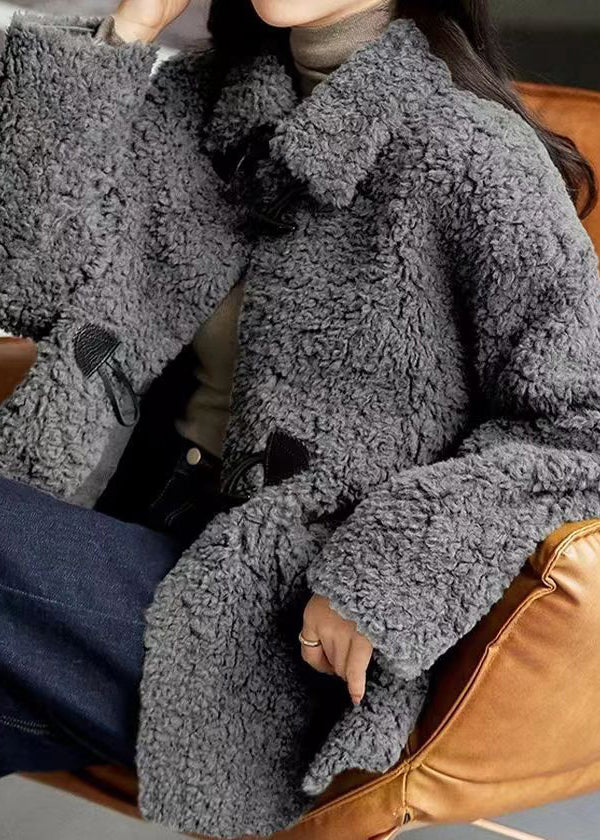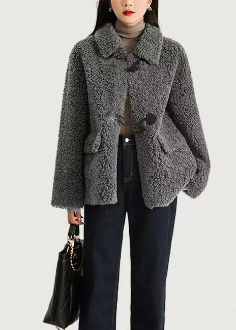 Modern Grey Peter Pan Collar Pockets Patchwork Wool Coats Winter