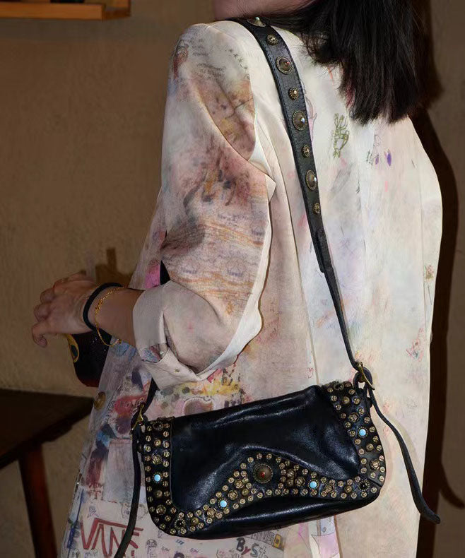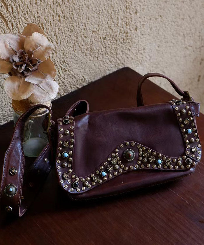 Stylish Chocolate Rivet Solid Durable Leather Women Shoulder Bags