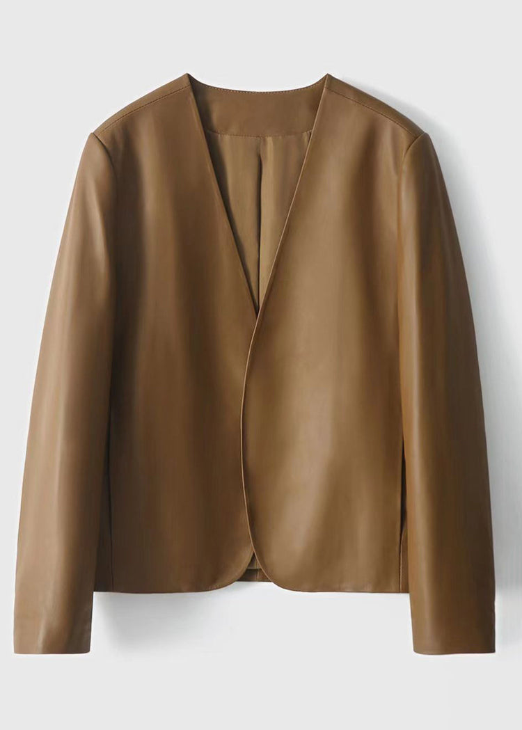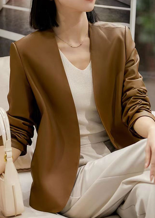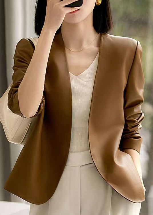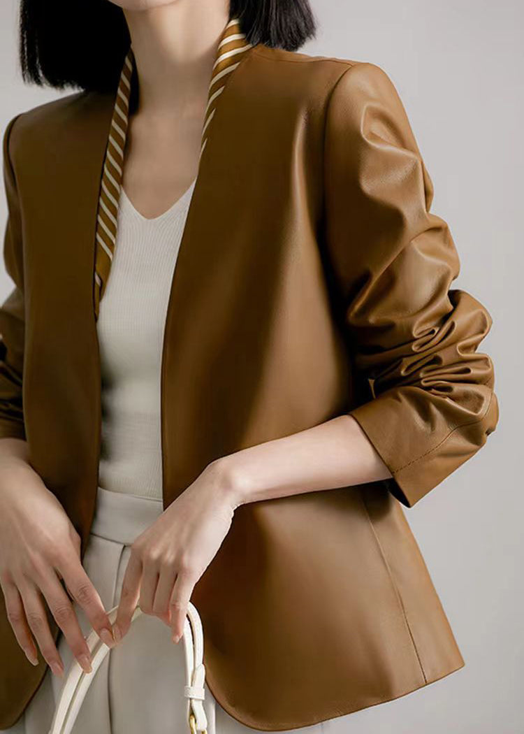 Women Brown V Neck Patchwork Sheepskin Coats Fall