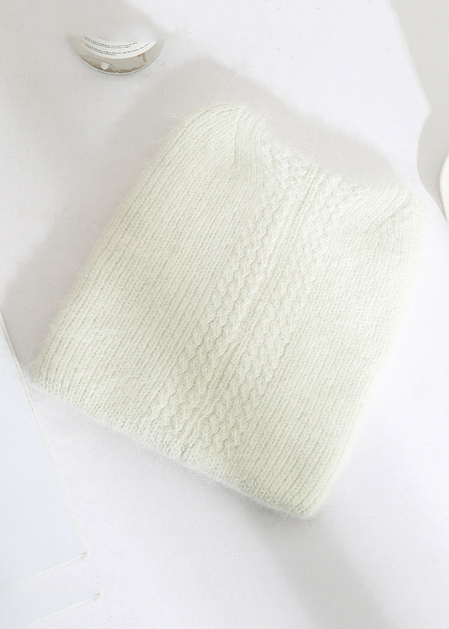 Cute White Warm Rabbit Hair Knit Bonnie Hat