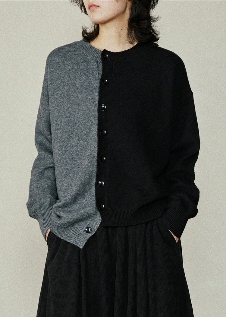 Brief Colorblock O-Neck Asymmetrical Cotton Knit Sweaters Fall