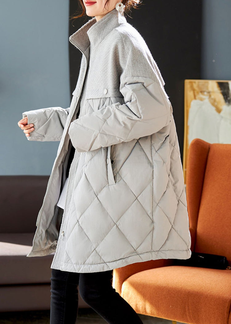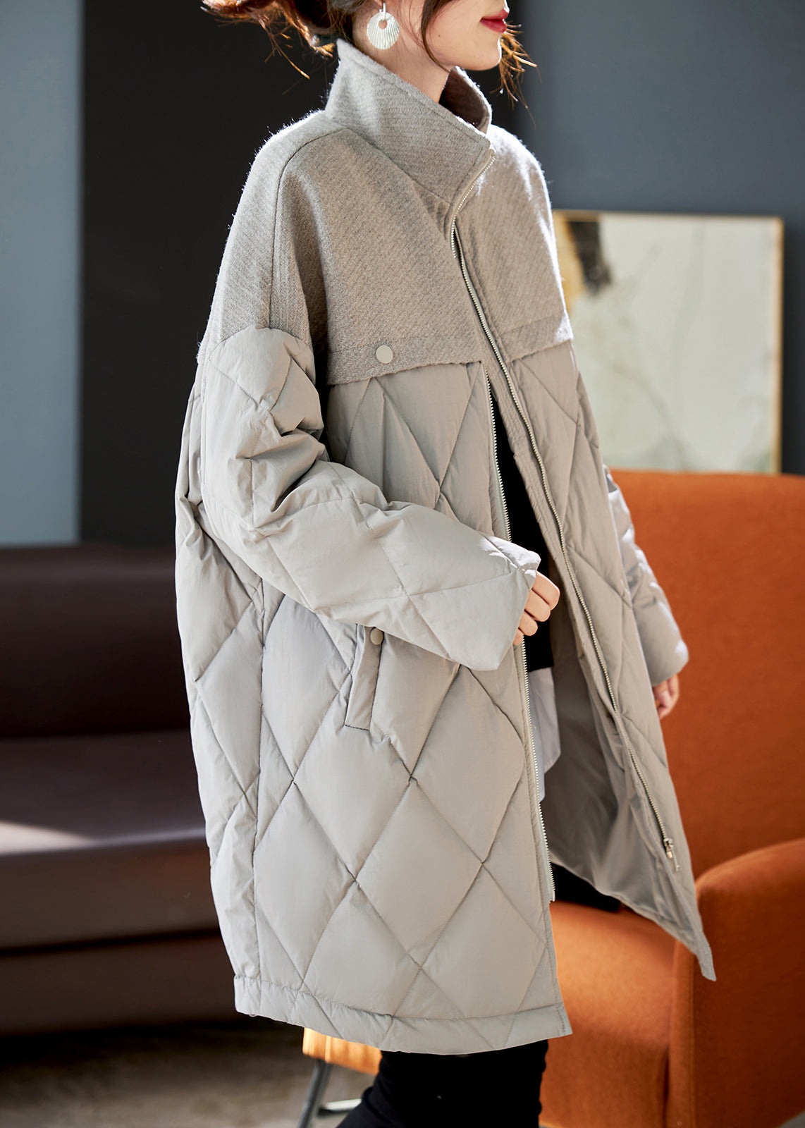 Elegant Grey Woolen Patchwork Duck Down Down Coat Winter