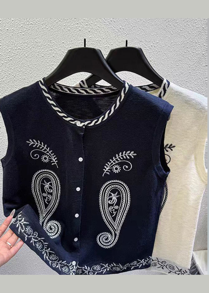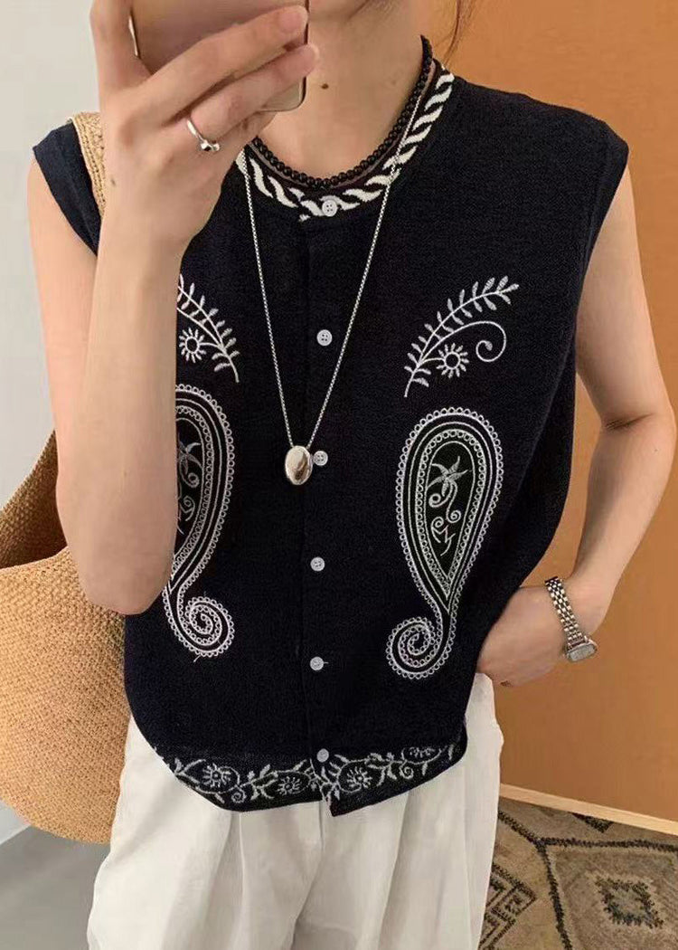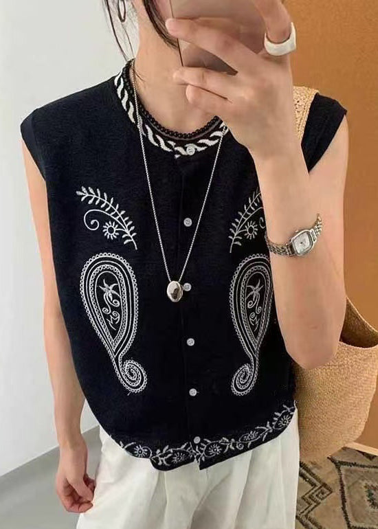 Women Black Embroideried Knit Vest Tops Sleeveless
