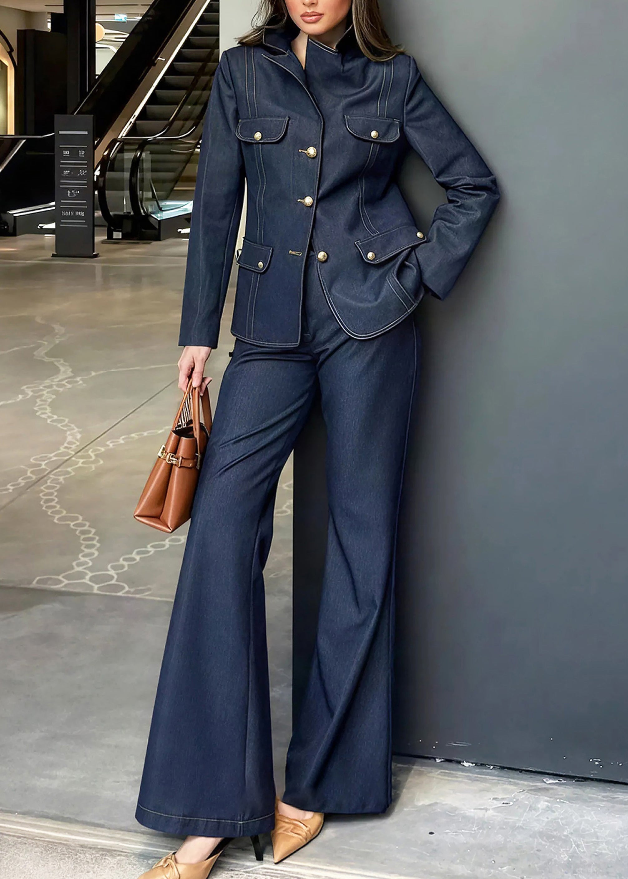 American Style Blue Coat And Pants Denim Two Pieces Set Fall