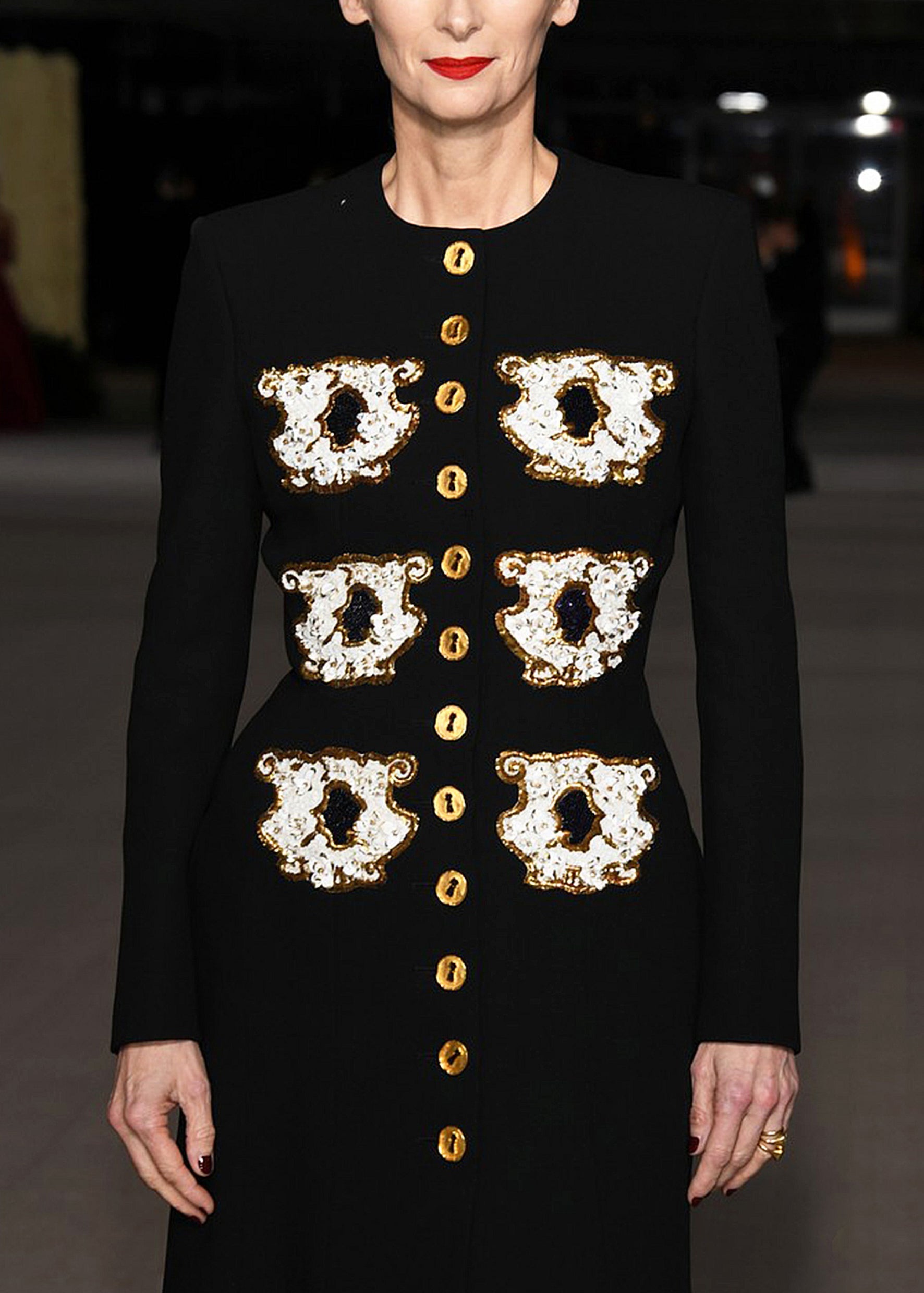 Original Design Black O-Neck Sequins Button Long Coat Autumn