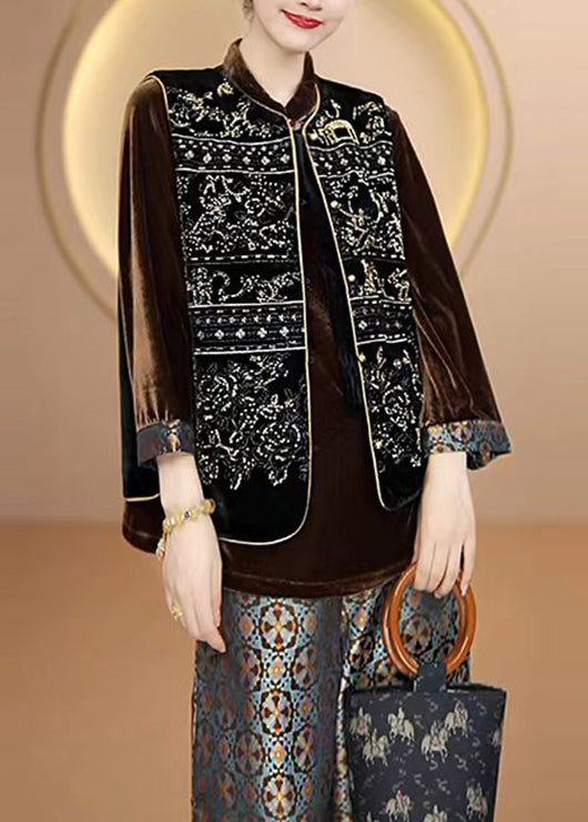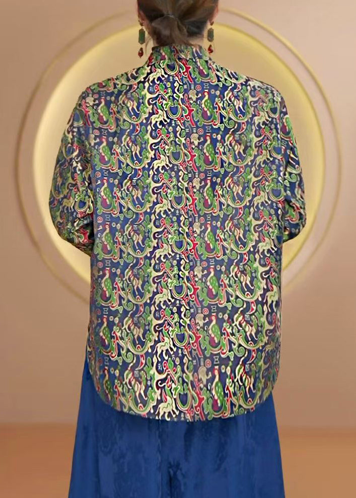 Retro Stand Collar Print Chinese Button Silk Coats Fall