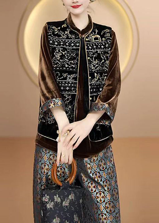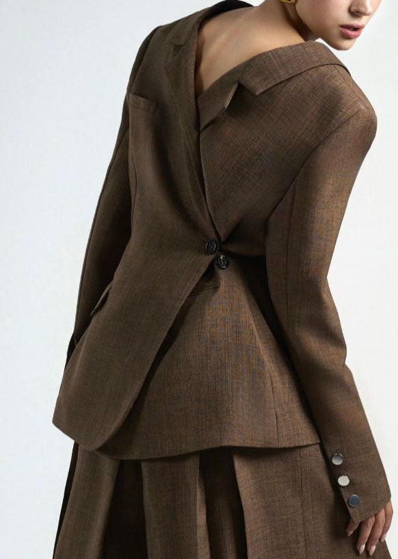 Women Elegant Brown Peter Pan Collar Patchwork Suit Coats Fall