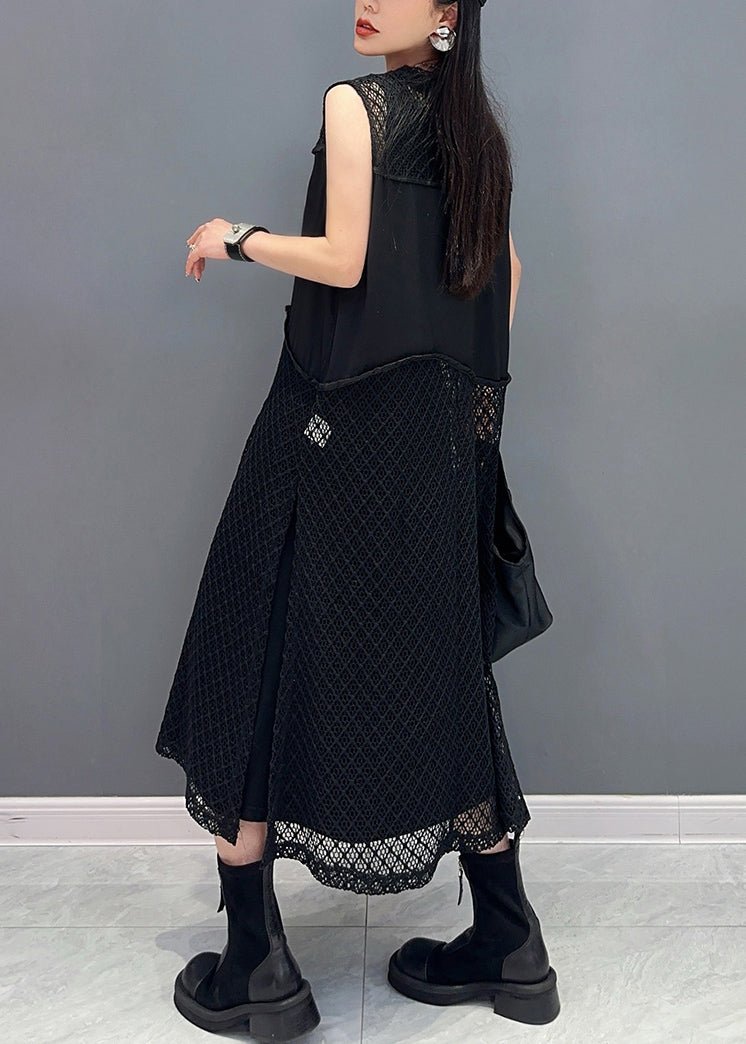 Black Ruffled Patchwork Cotton Long Dresses U Neck Summer