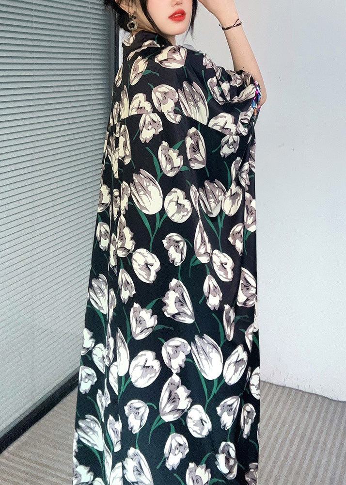 Chic Colorblock V Neck Print Cotton Maxi Dresses Batwing Sleeve