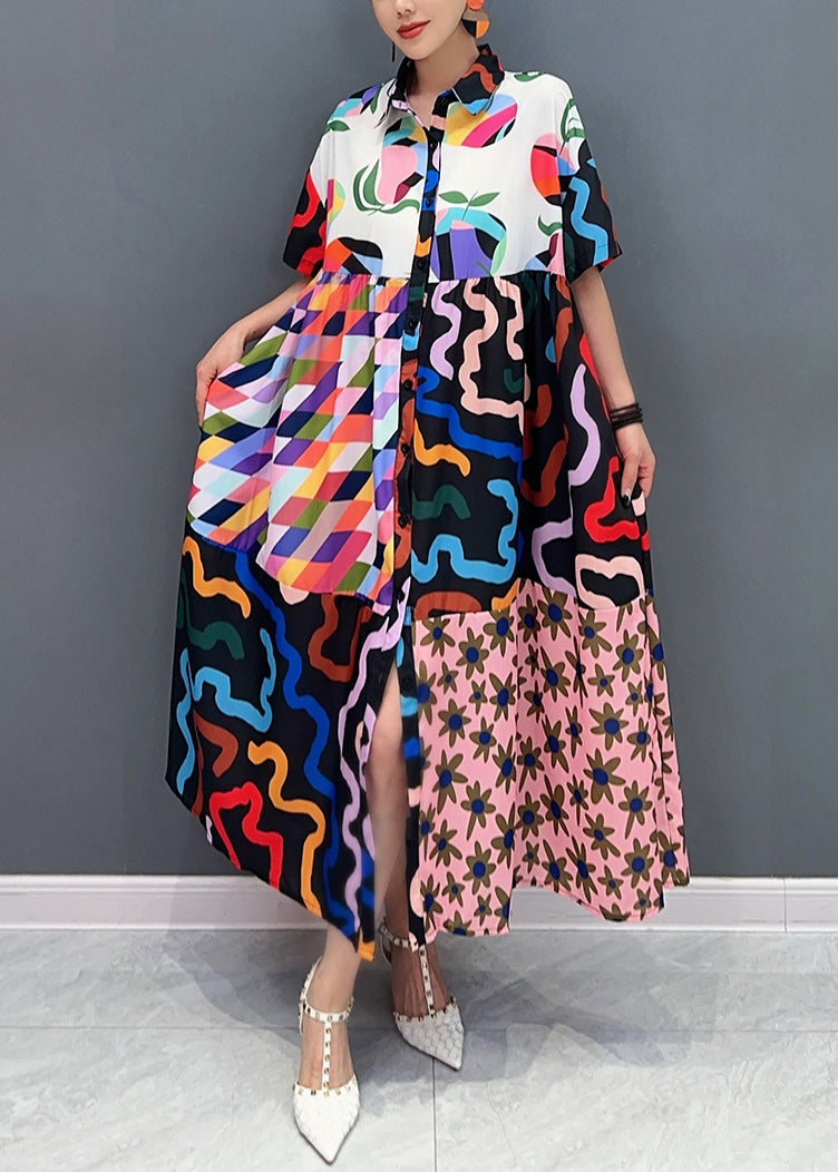Plus Size Plaid Button Patchwork Cotton Dress Summer