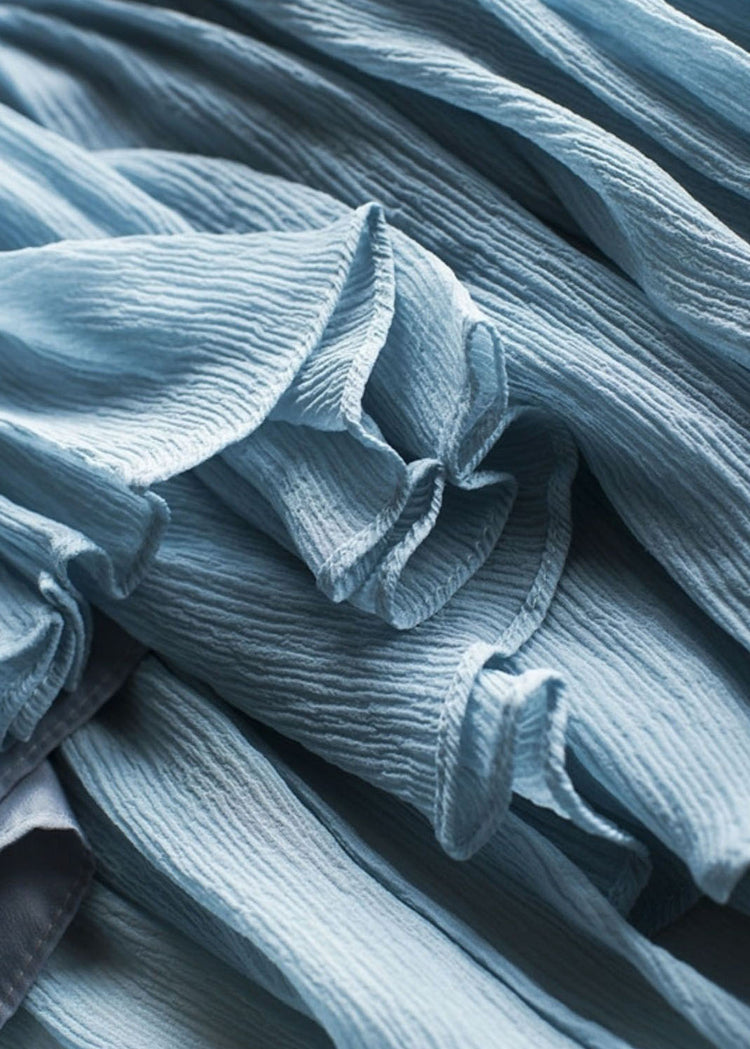 Chic Blue Wrinkled Chiffon Shirt And Spaghetti Strap Two Pieces Set Lantern Sleeve