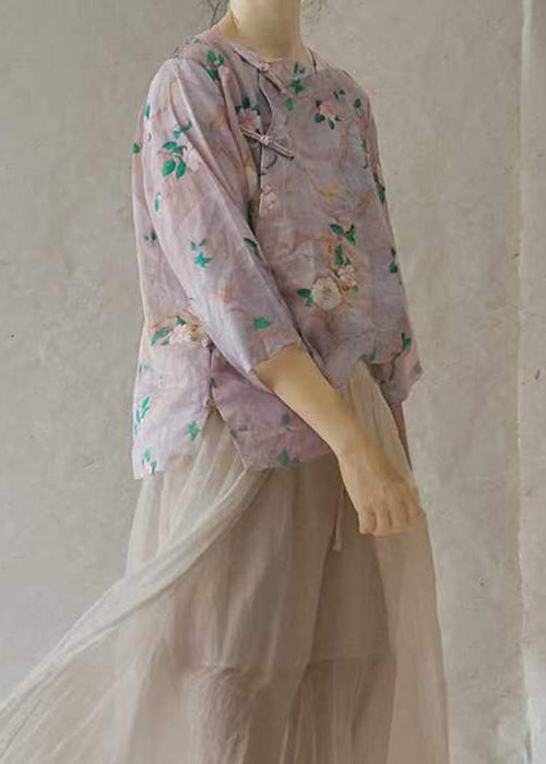 Beautiful Purple O-Neck Button Linen Shirt Half Sleeve