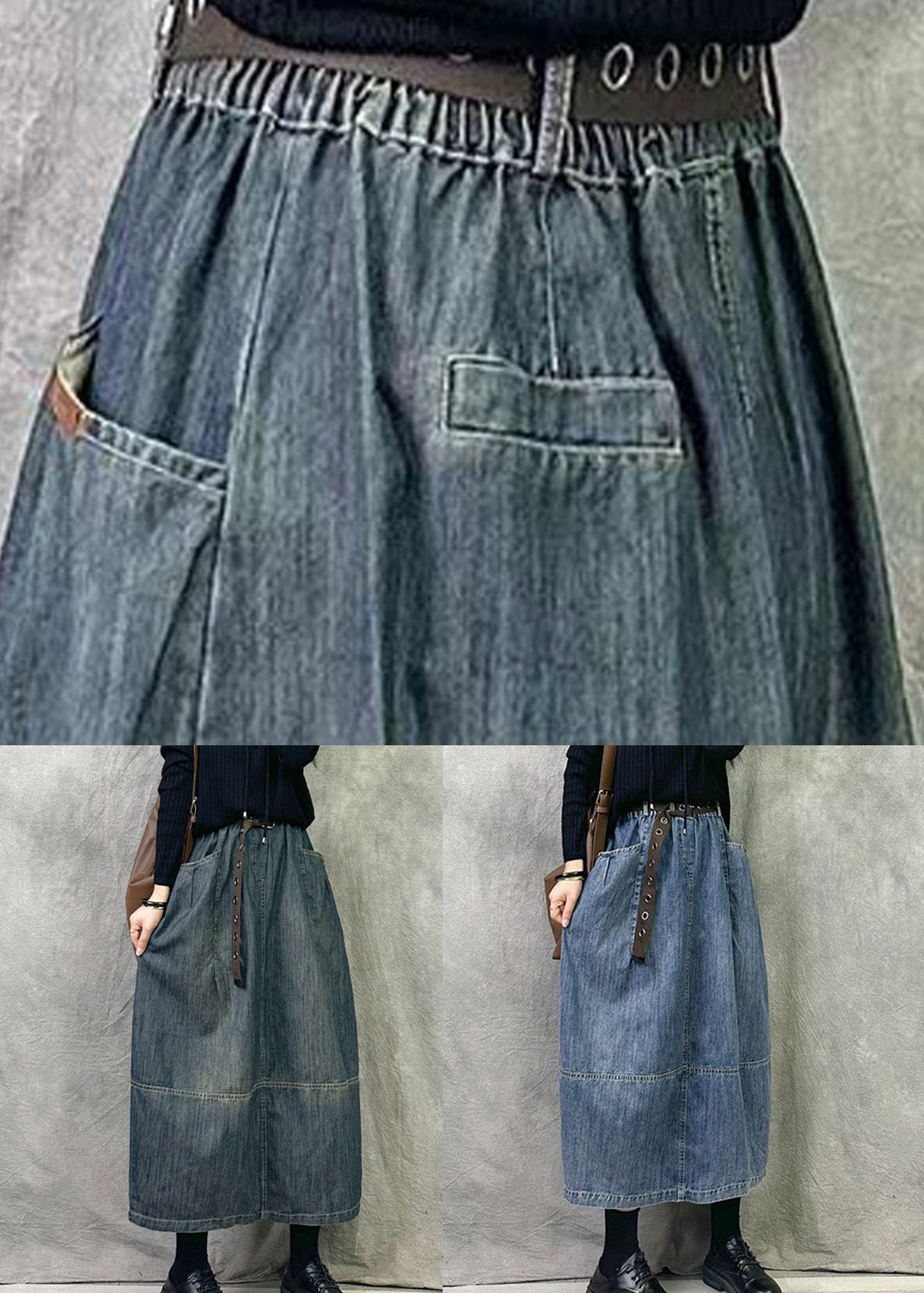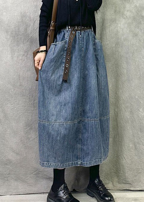 Blue Elastic Waist Patchwork Denim A Line Skirts Pockets