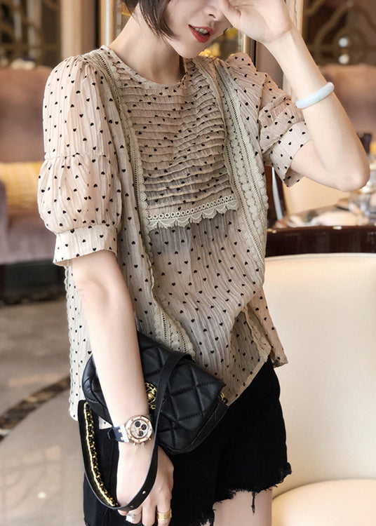 Vogue Apricot O Neck Print Chiffon T Shirt Short Sleeve