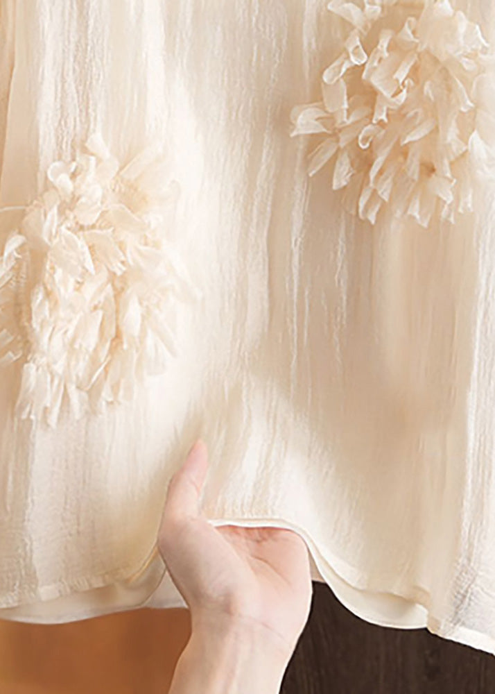 Style Khaki Neck Patchwork Wrinkled Silk Shirt Lantern Sleeve