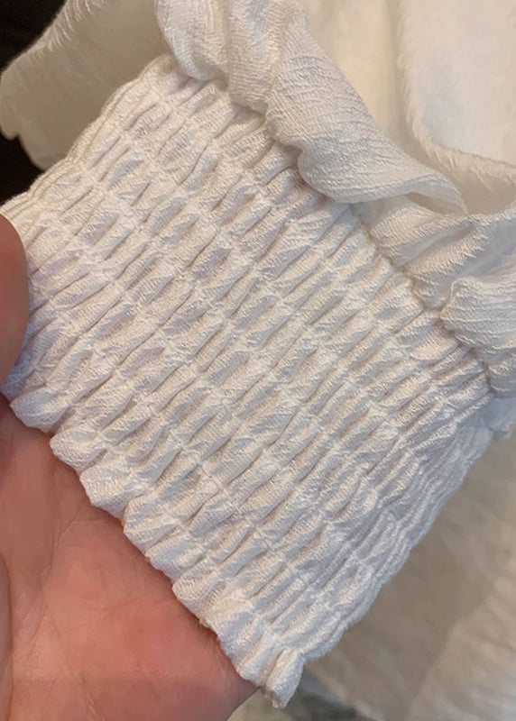 Novelty White O-Neck Patchwork Tassel Chiffon Shirts Fall