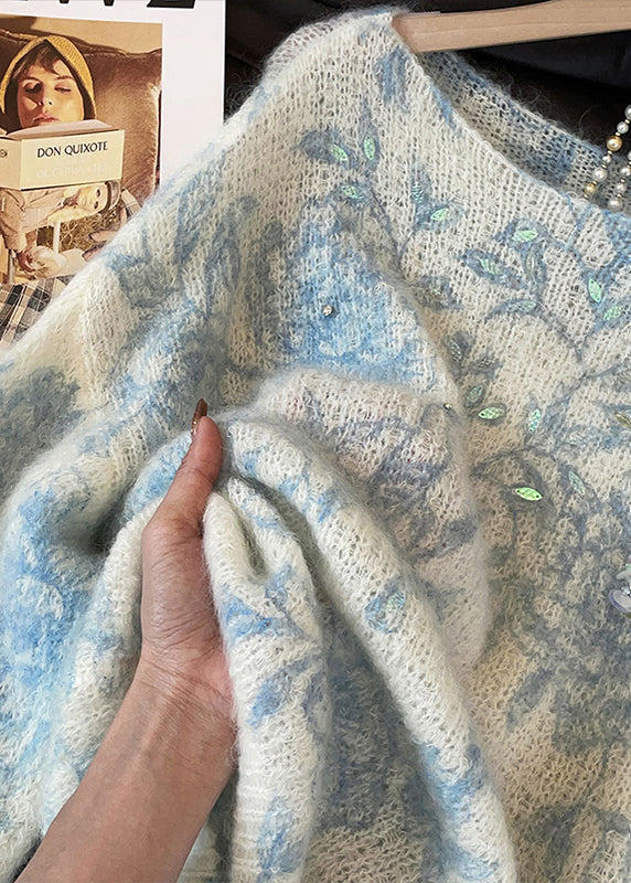 Blue Print Knit Cozy Sweaters Sequins Fall
