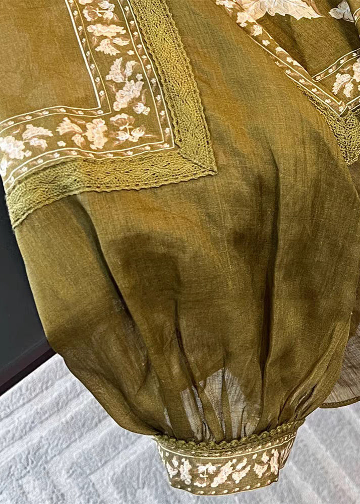 Fashion Beige Lace Button Solid Cotton Shirts Puff Sleeve