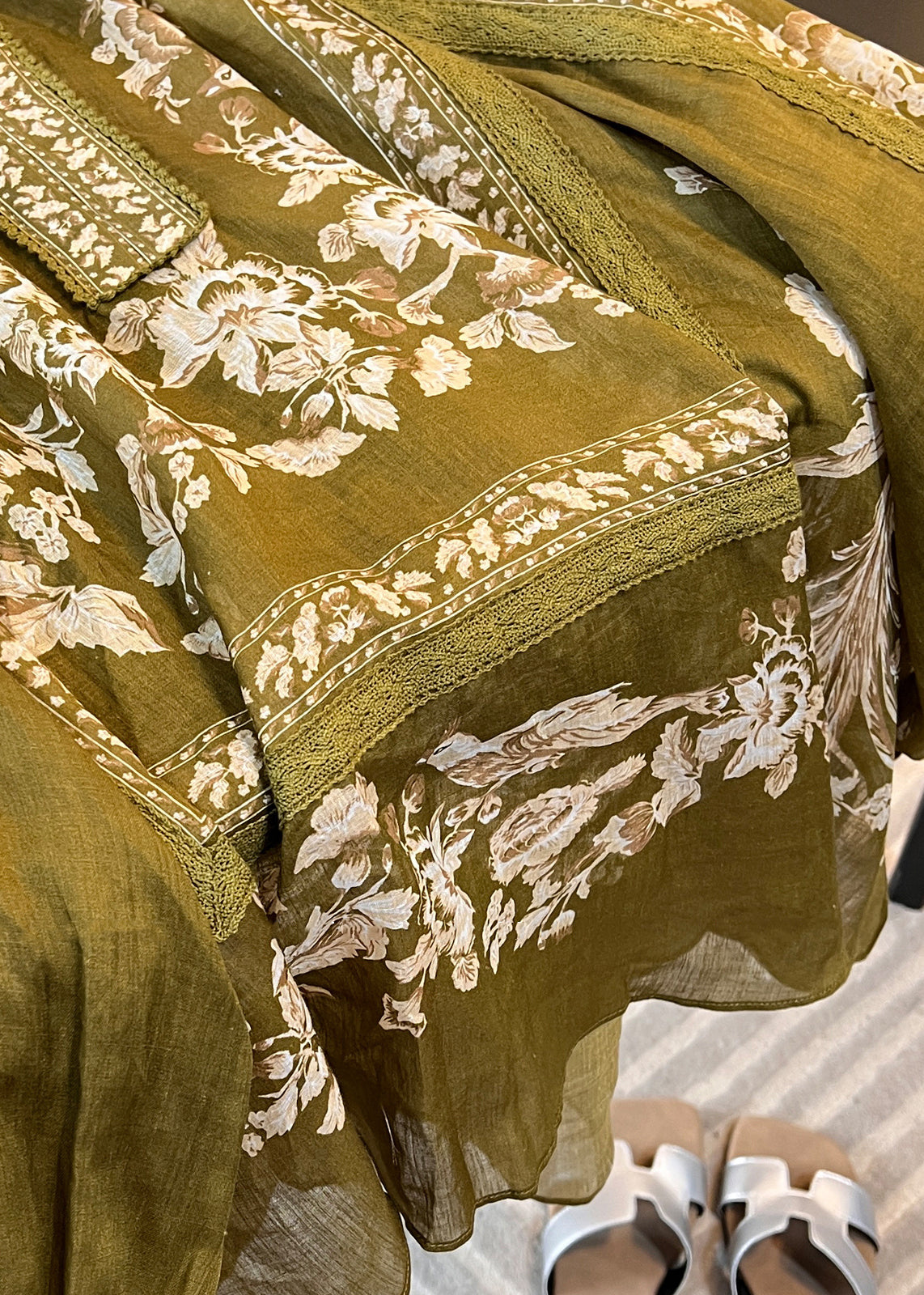 Art Beige Embroidered Ruffled Lace Blouses Fall