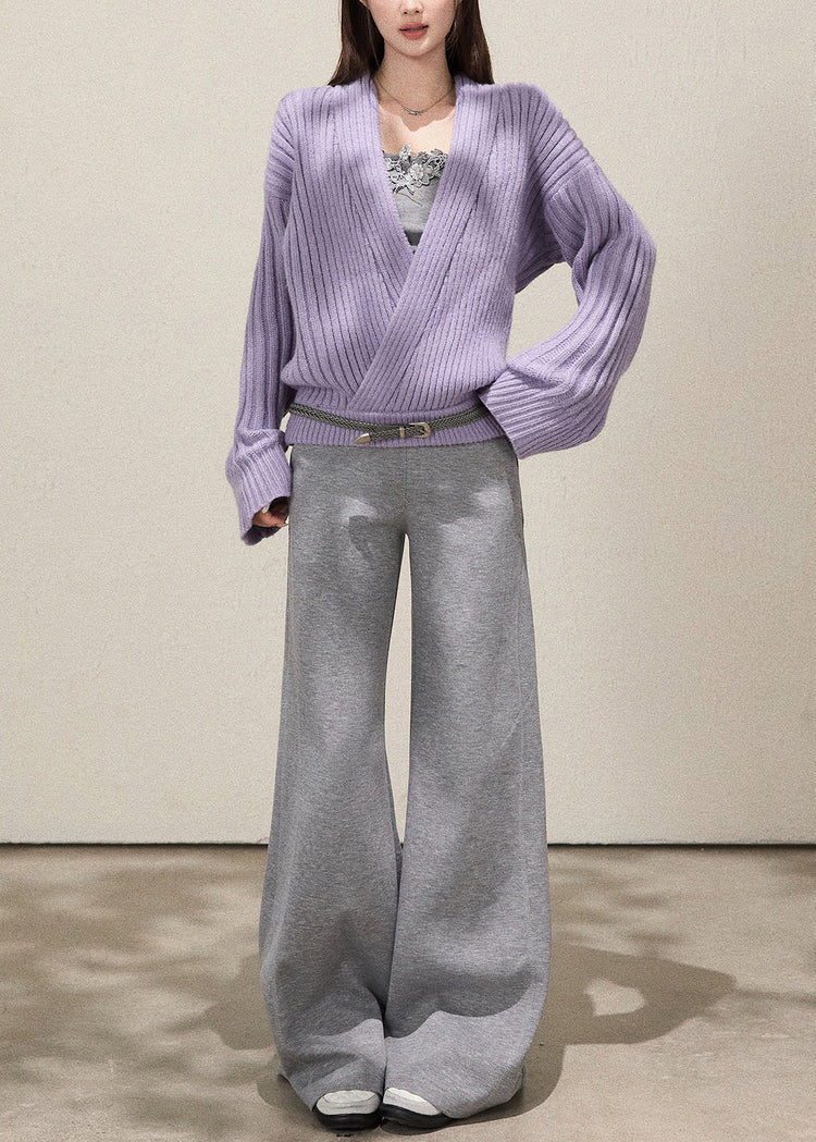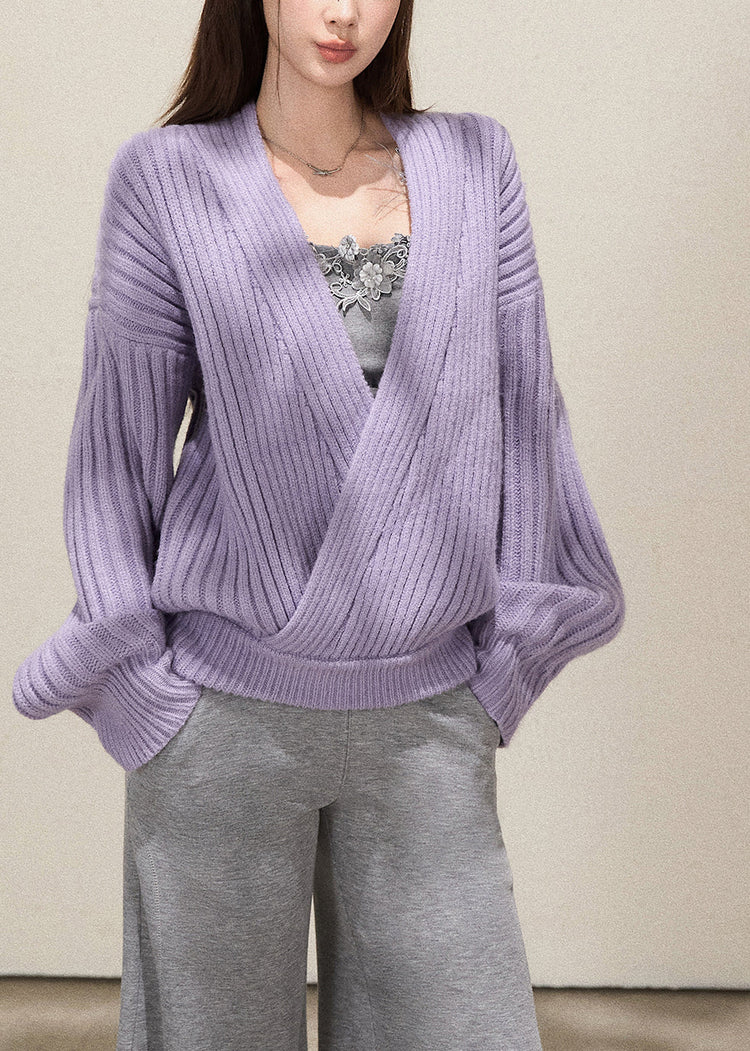 Fine Lavender V Neck Striped Knit Sweater Fall