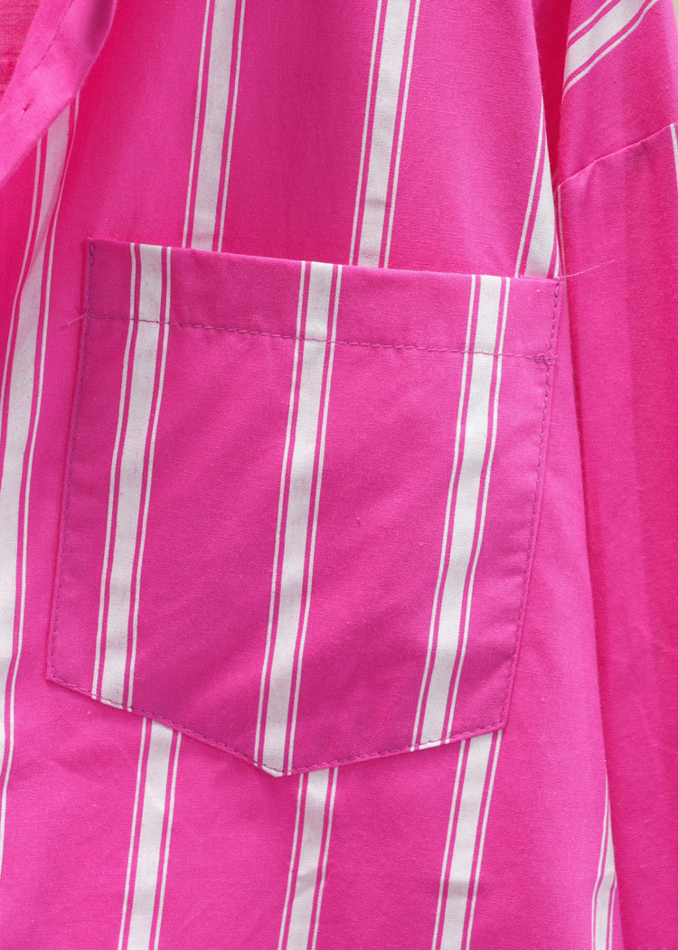 Rose Striped Pockets Cotton Fall Shirts Peter Pan Collar
