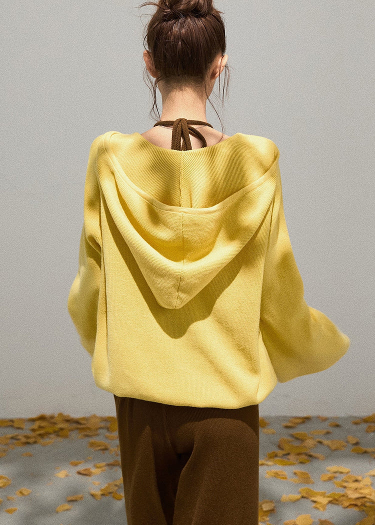 Women Yellow Hooded Knit Pullover Sweatshirt Fall
