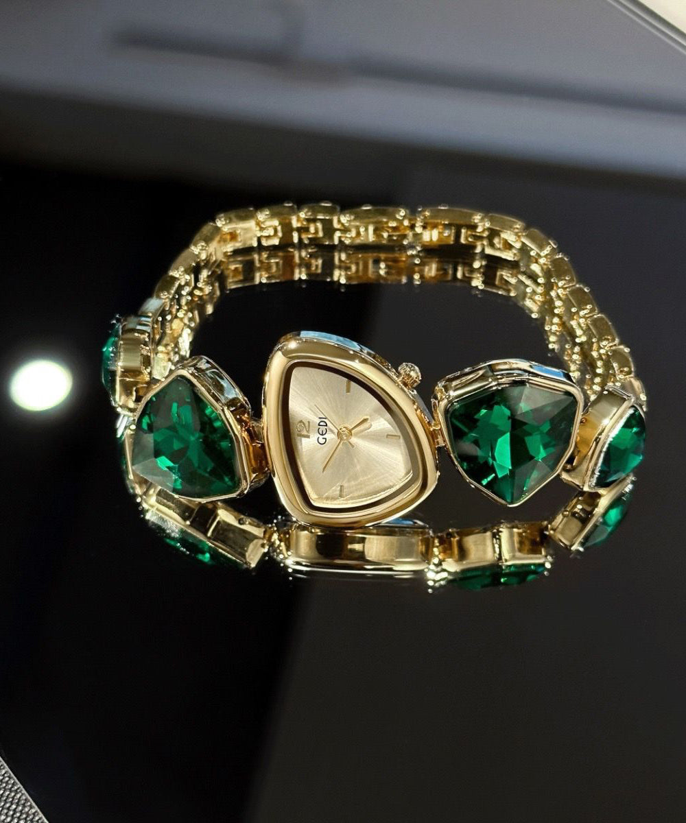 Fashion Red Stainless Steel Alloy Asymmetrical Gem Stone Watches