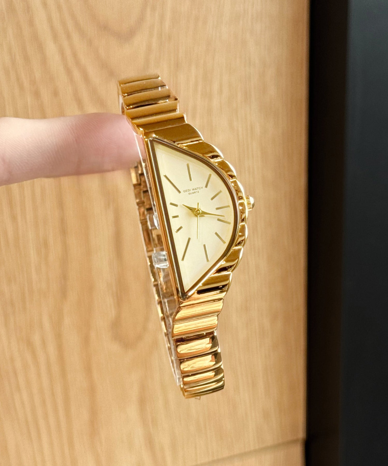 Novelty Gold Alloy Asymmetrical Reinforced Glass Watches