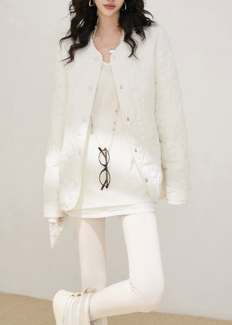 Style White Oversized Embossing Fine Cotton Filled Coats Winter