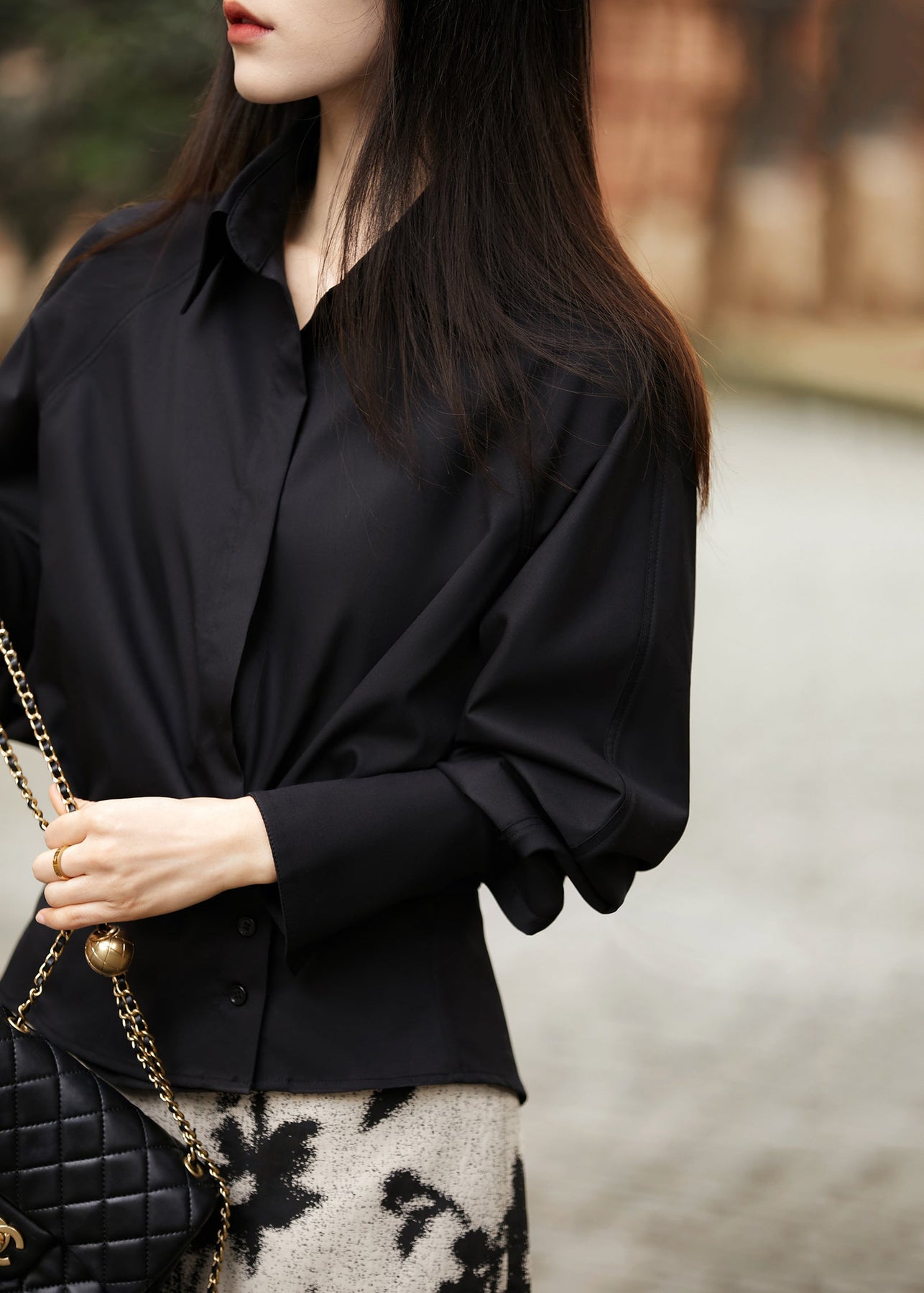 Slim Fit White Peter Pan Collar Button Cotton Shirt Fall