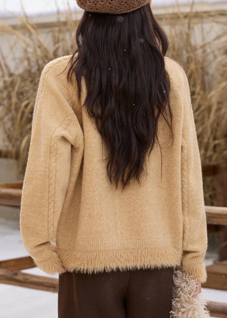 Handmade Yellow Peter Pan Collar Patchwork Sequins Thick Cotton Knit Sweaters Fall