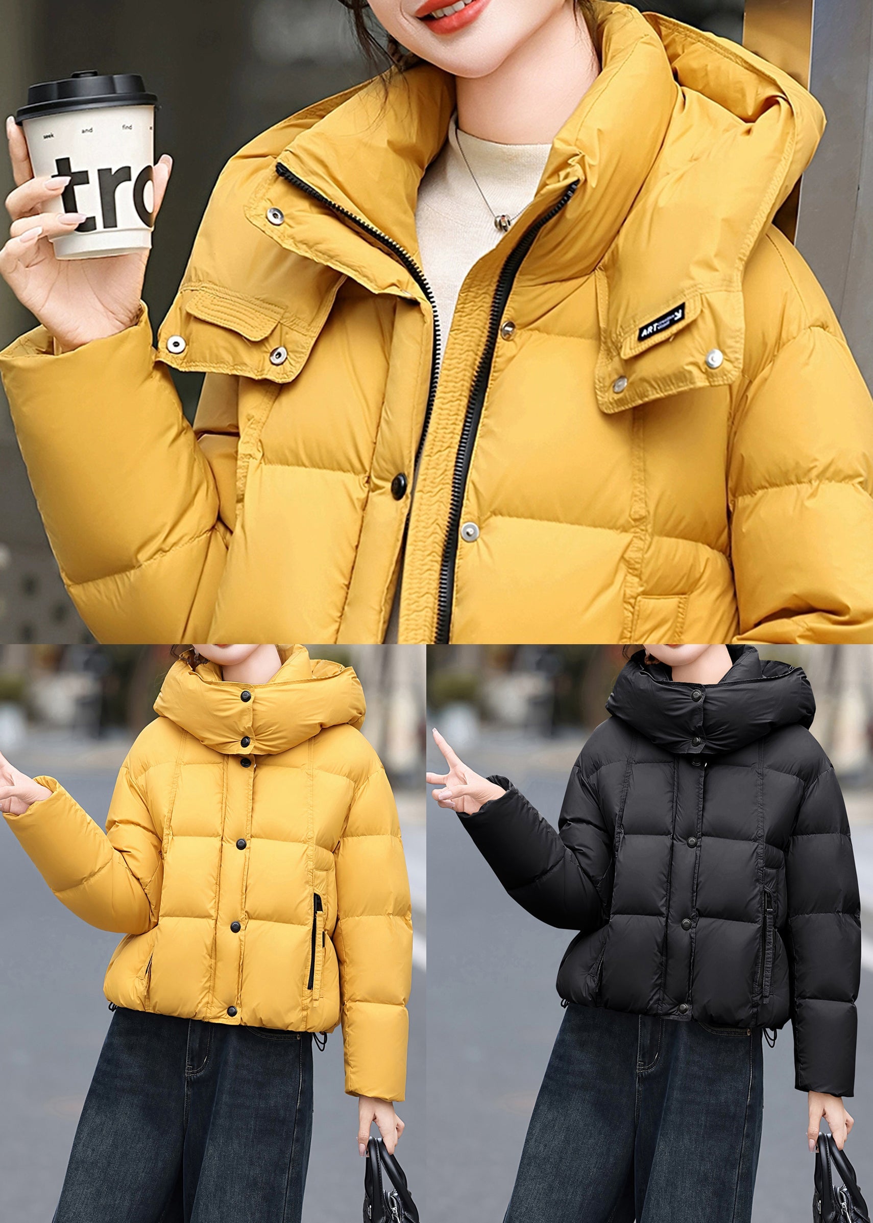 Black Pockets Duck Down Casual Jacket Hooded Winter