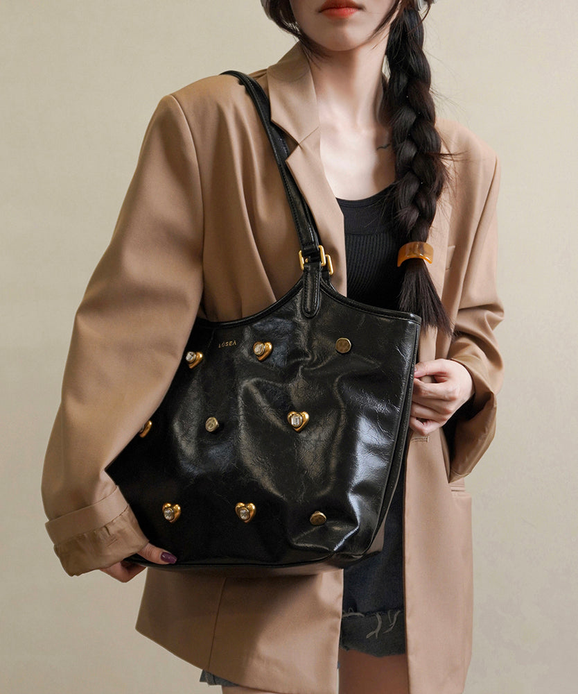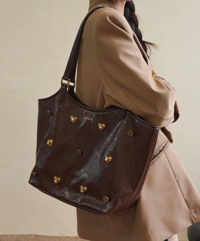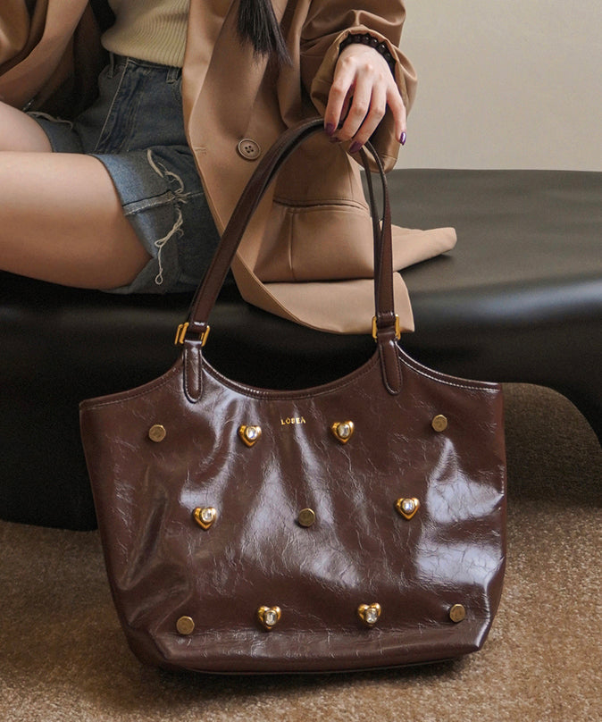 Boutique Chocolate Zircon Large Capacity Faux Leather Satchel Handbag