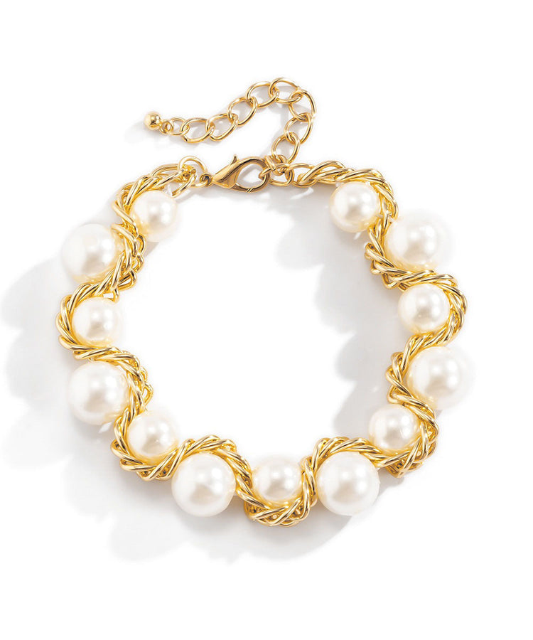 Boho Gold Copper Alloy Pearl Gratuated Bead Necklace