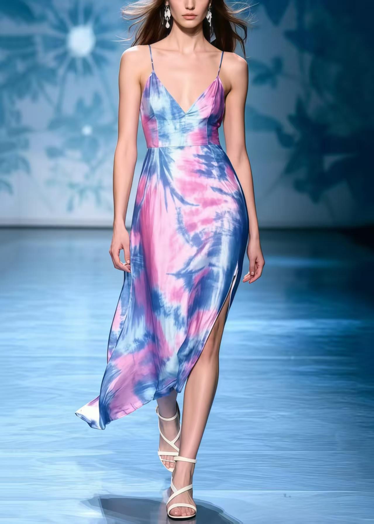 Boutique Polychrome Asymmetrical Tie Dye Chiffon Mini Dress Summer