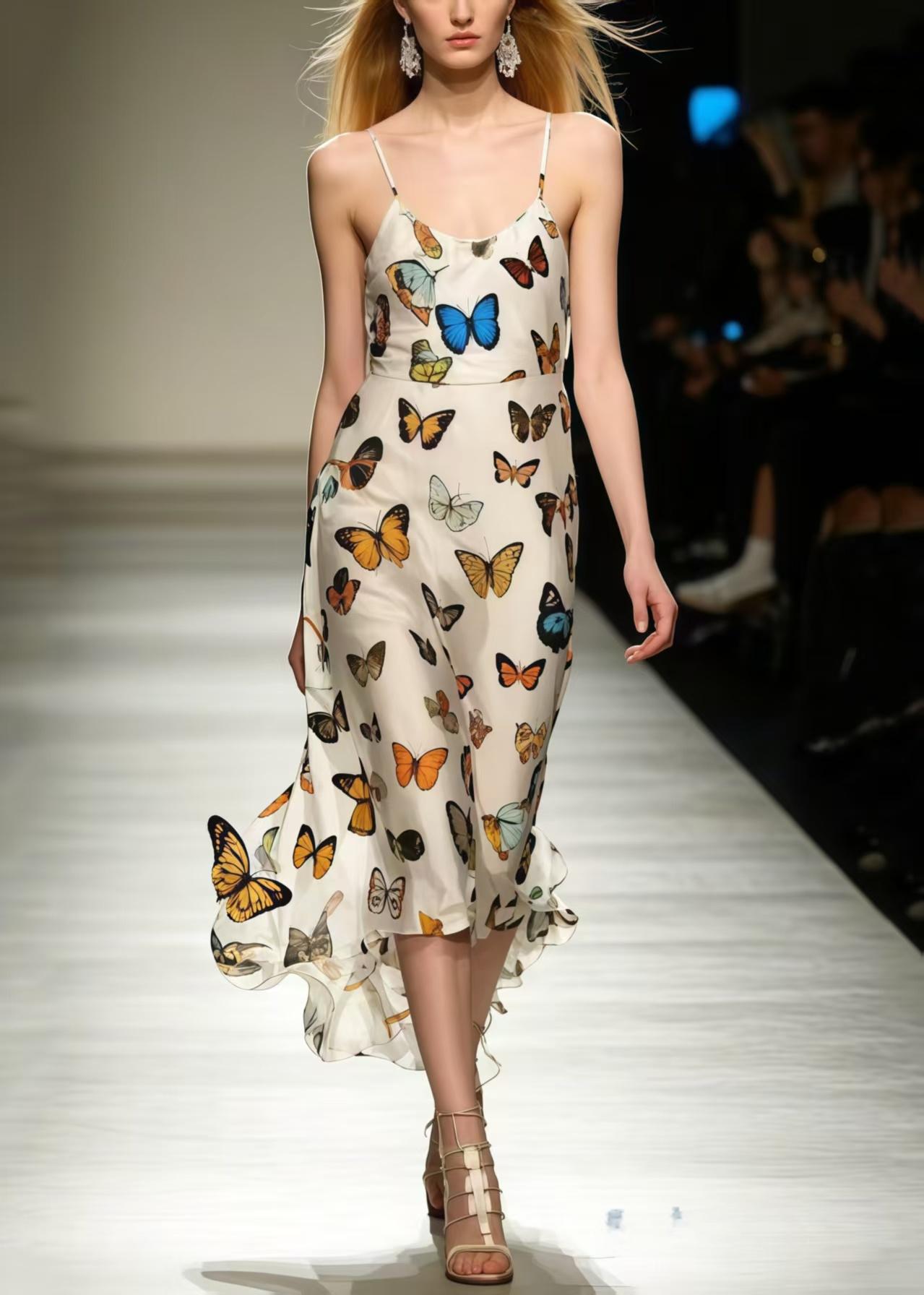 Silm Fit Polychrome Butterfly Chiffon Spaghetti Strap Dress Summer