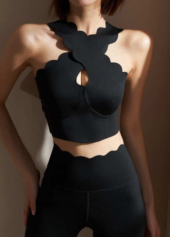 Casual Black Patchwork High Waist Sports Bra And Skirts Set Suit